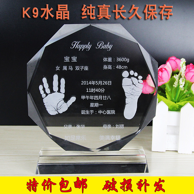 新生兒紀念品嬰兒手腳印水晶擺飾滿月百日周歲禮品